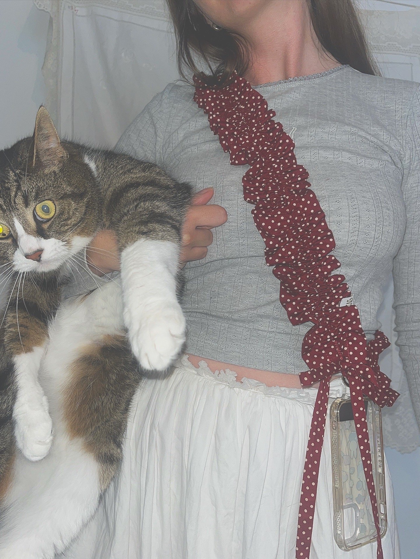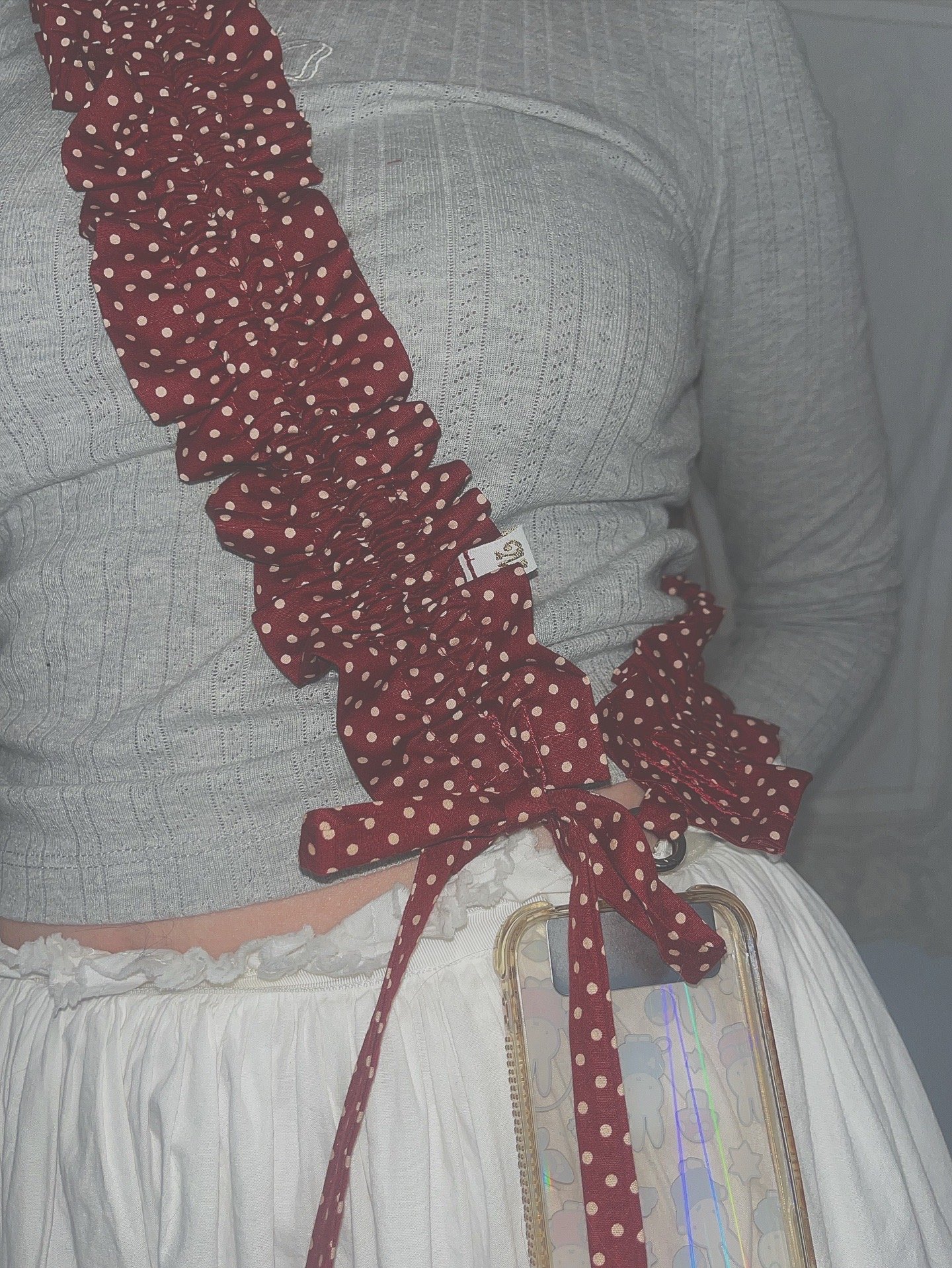 A bigger ruffle, a bolder statement in the cutest polka dots. Adjustable from 100–150cm, this extra-large version of our signature strap is made for maximum versatility. Whether you're slinging it on your phone, bag, or water bottle, the sturdy round clasps make it easy to clip on and go.